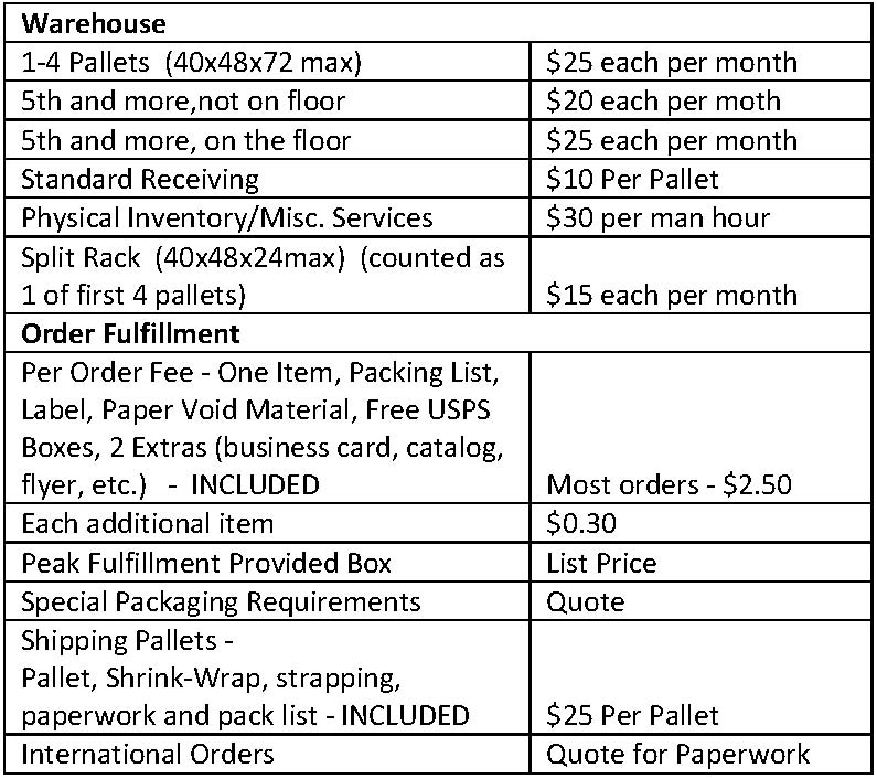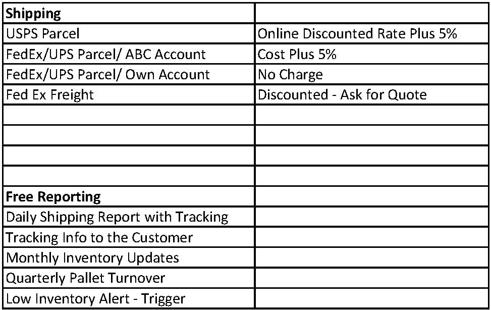 ****This pricing schedule is only a guideline for our standard services. We work with each individual customer to learn their business and will customize our prices to suit their needs.